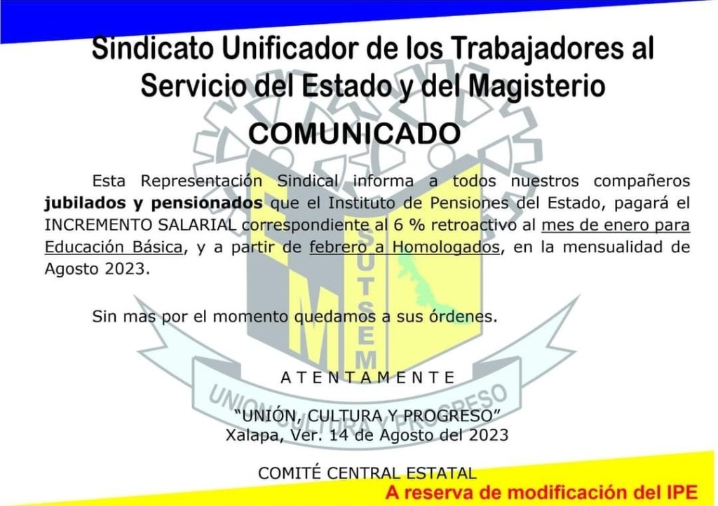 Sin categoría Aviso IPE Incremento Salarial Publicado por gabosutsem el 16 de agosto de 202316 de agosto de 2023 Comparte esto: Compartir en X (Se abre en una ventana nueva) X Comparte en Facebook (Se abre en una ventana nueva) Facebook Me gusta Cargando... Relacionado